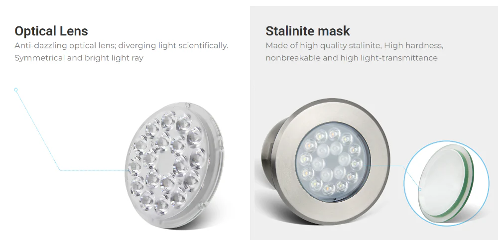 The Miboxer UW03 is a high-performance RGB+CCT underwater LED light, offering vivid illumination for ponds, fountains, and pools with smart control via LoRa 433MHz RF. Built with 316 stainless steel housing and a 15° narrow beam angle, it delivers 600 lumens of focused, color-rich lighting and supports over 16 million colors with adjustable white tones from 2700K to 6500K.